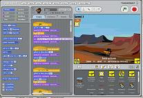 Een voordeel van dit programma boven Scratch vind ik dat je het resultaat kunt exporteren naar een html-file, zodat je het in je browser kunt bekijken. Het lijkt me leuk om de producten van een hele klas zo via het web aan te bieden! Door de grote (gratis bijgeleverde, en ook