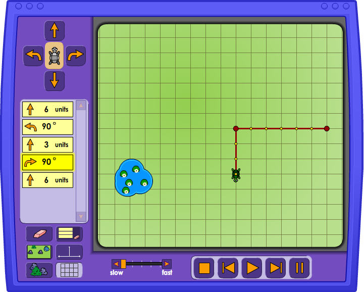 • Turtle pond: laat een kikkertje van de ene naar de andere coördinaat laten springen en draaien om in de vijver te komen,